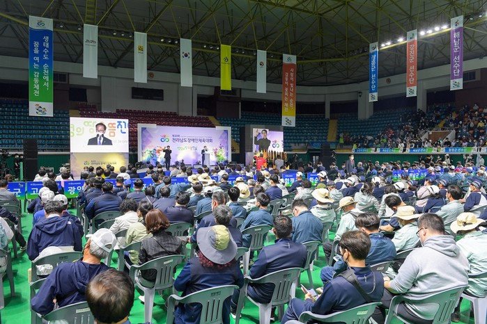 [전남=프레스뉴스] 강래성 기자= ‘사람이 빛나는 순천, 감동이 꽃피는 체전’이라는 구호 아래 11일부터 13일까지 3일간 개최되는 제30회 전남장애인체육대회의 시작을 알리는 개막식이 11일 순천 팔마실내체육관에서 펼쳐졌다.