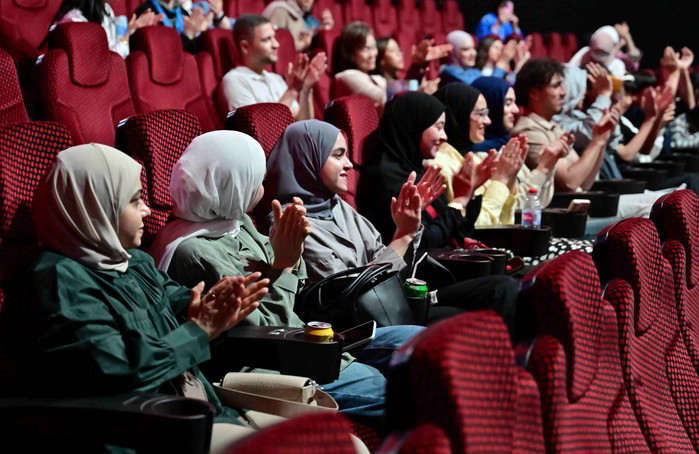 [프레스뉴스] 채정병 특파원=4일(현지시간) 주요르단 대한민국대사관과 요르단 왕립영화위원회가 개최하는 제19회 한국영화제가 6일까지 3일간 우리영화 '공조2', '괜찮아 괜찮아 괜찮아', '1승'이 매일 저녁 암만 타지시네마에서 상영되는 가운데 첫날 상영작 '공조2'를 보고 난 관객들이 이석훈 감독을 향해 박수를 보내고 있다.