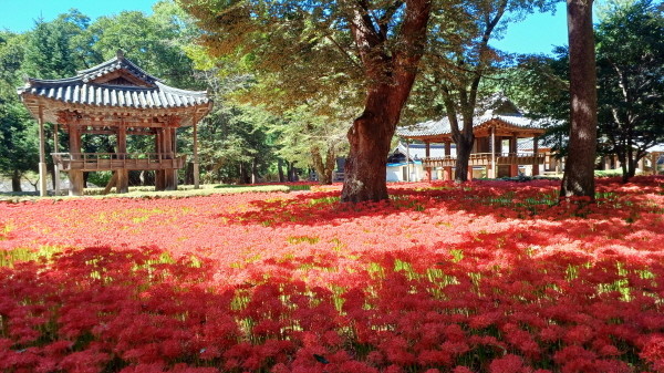 특히 9월 말에서 10월 초 사이에는 꽃무릇이 피어 붉은 빛깔로 갈계숲을 물들여 방문객의 시선을 사로잡는다.