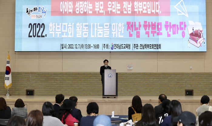 [전남=프레스뉴스] 강래성 기자= 전라남도교육청(교육감 김대중)이 12월 7일(수) 순천만생태문화교육원 다목적홀에서 교육지원청 업무담당자와 각 지역 학부모 150여 명이 참석한 가운데 ‘2022. 전남 학부모 한마당’을 열었다.
