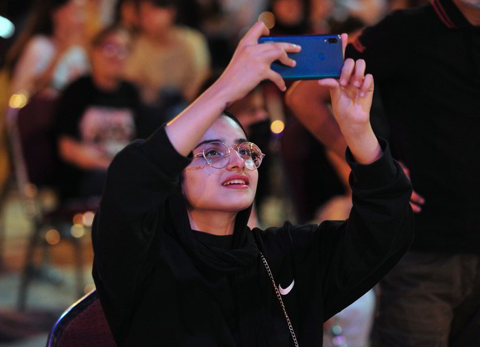 [프레스뉴스] 채정병 특파원=1일(현지시간) 세계적인 대한민국 비보이 그룹 진조크루의 요르단 특별공연이 제라쉬 페스티벌 야외무대에서 펼쳐진 가운데 한 여성이 멤버들의 안무와 동작 하나하나를 휴대폰에 담고 있다.