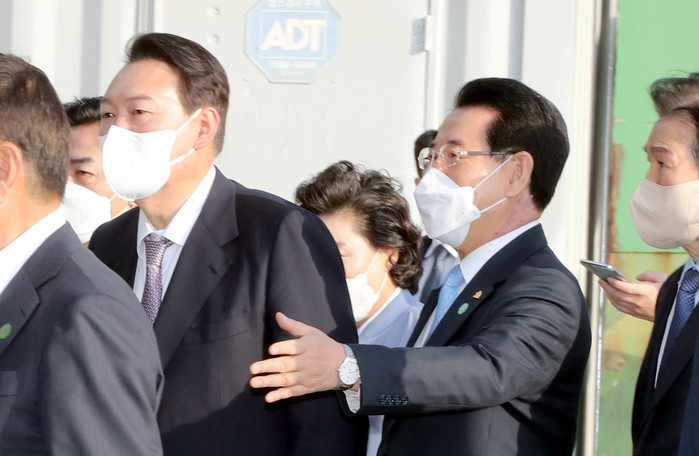 [전남=프레스뉴스] 강래성 기자= 윤석열 대통령 당선인이 20일 당선 이후 처음으로 전남을 방문해 영암 대불국가산단에서 조선산업 현장을 둘러보며 기업인의 생생한 현장의 목소리를 들었다.