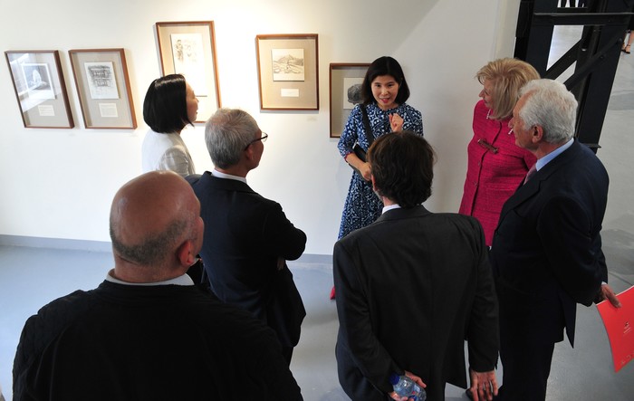 [프레스뉴스] 채정병 특파원=16일(현지시간) 요르단 암만에서 열린 한-요르단 수교 60주년 기념전시회 'Breaking the Borders'에서 안세은 작가가 내빈들에게 한국 작가들의 작품을 설명하고 있다.