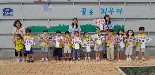 이날 행사에는 유아와 선생님 등 20여 명이 참석했으며, 체력단련실과 노인복지관·장애인복지관 로비 3곳에서 어르신과 이용객들에게 흡연의 해로움과 금연의 중요성에 대한 홍보활동을 진행했다.