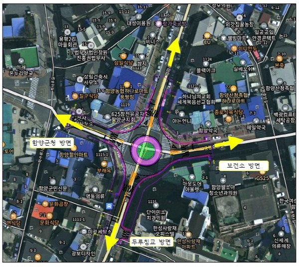| ▲ 함양읍 낙원사거리 회전교차로 설치 (사진=거창군) |