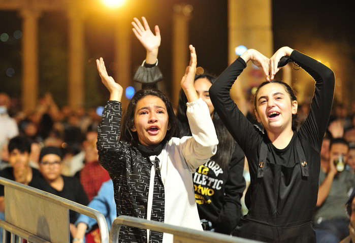 [프레스뉴스] 채정병 특파원=1일(현지시간) 세계적인 대한민국 비보이 그룹 진조크루의 요르단 특별공연이 제라쉬 페스티벌 야외무대에서 펼쳐진 가운데 소녀들이 공연을 보며 기쁨을 표현하고 있다.
