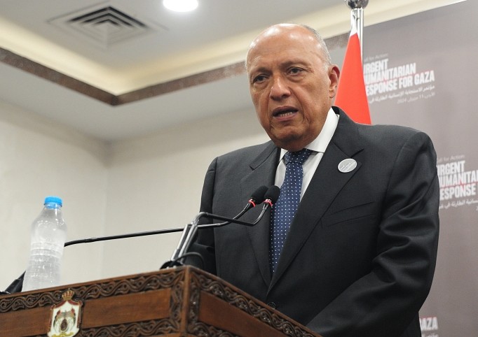 [프레스뉴스] 채정병 특파원=11일(현지시간) 가자지구를 위한 인도주의 행동촉구 회의 후 열린 3자 공동기자회견에서 사메 쇼크리 이집트 외무장관이 “이집트는 라파 국경을 다시 열기 위해 노력하고 있다”고 발언하고 있다.