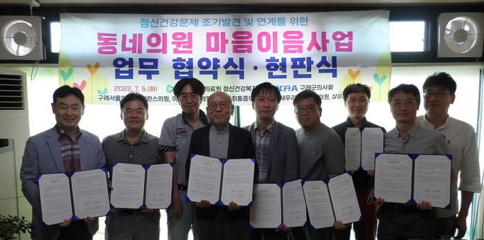 [전남=프레스뉴스] 강래성 기자= 전남 구례군 정신건강복지센터는 5일 관내 의원 6곳과 협약을 맺고 정신건강문제 조기발견과 자살예방을 위한 동네의원 마음이음사업을 시작했다.