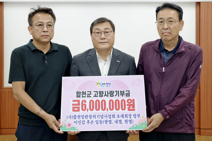 김윤철 합천군수는 “합천을 위해 따뜻한 온정을 베풀어주셔서 감사드린다. 보내주신 따뜻한 마음은 합천군 발전과 군민들을 위한 의미있는 사업에 사용하겠다”며 “건전한 기부 문화 확산을 위해 더욱 노력하겠다”라고 말했다.