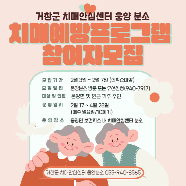 기타 자세한 사항은 거창군 치매안심센터(☎055-940-7917)로 문의하면 된다.