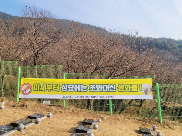 이에 함양군은 친환경 추모 문화를 확산하기 위해 공설추모공원 내 모든 조화 사용을 금지하고, 향후 조화가 사용될 경우 군에서 일괄 회수 후 폐기 처리할 예정이다.