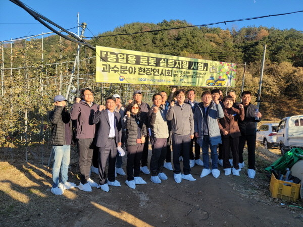 | ▲ 2023년 농업용 로봇 실증지원 사업 과수분야 현장 연시회(사진=거창군) |