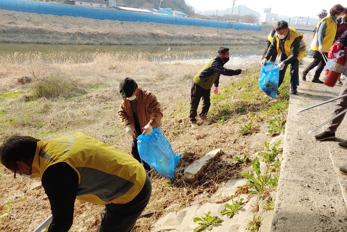 | ▲나주 이창동, 벚꽃 명소 ‘만봉천’ 정화활동 펼쳐/나주시 제공 |