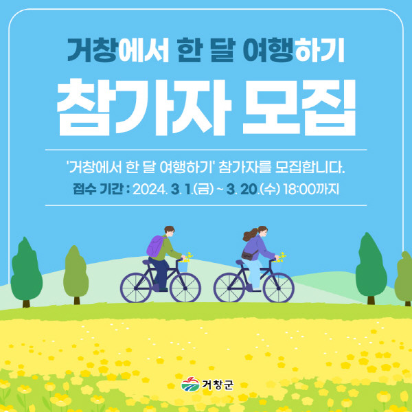만19세 이상 경남지역 외 거주자는 누구나 1∼2명으로 팀을 구성해 참여할 수 있고, 거창을 여행하는 동안 거창의 다양한 관광자원을 개인 SNS를 통해 전국에 홍보하면 된다.