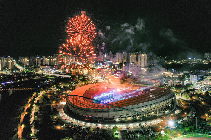 하이라이트인 제4막 ‘새로운 기적’에서는 김경희 한국산업기술시험원 우주부품시험센터장, 김성규 진주논개제전위원회 위원장, 이주영 진주시민축구단 선수가 성화를 점화하며 감동의 절정을 이끌었다. 성화 점화 직후 펼쳐진 1,000대 드론의 군무와 불꽃놀이는 관람객의 탄성을 자아냈다.
