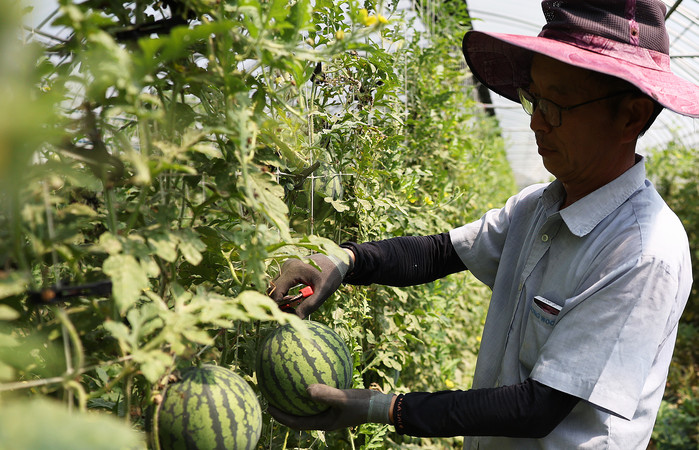 엄다면 성천리에 4,600㎡(1,400평) 규모의 애플수박 농장을 운영하고 있는 부부는 당초 미니단호박, 양상추, 고추 등 다양한 작목의 재배를 시도하다, 신 소득 작목으로 떠오르고 있는 애플수박으로 주 작목을 변경했다.