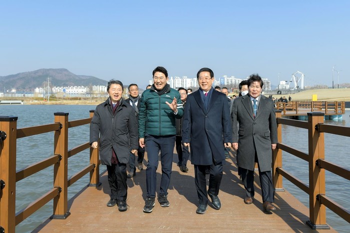 | ▲2023정원박람회 붐업페스타에 참석한 남성현 산림청장과 김영록 전남지사와 공영민 고흥군수와 함께 노관규 순천시장이 오천그린광장을 둘러보고 있다./순천시 제공 |