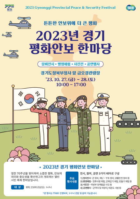 27~28일까지 경기도북부청사 금오경관광장 2023년 경기 평화안보 한마당 개최