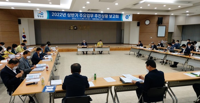 이번 보고회는 올해 계획한 주요시책 255건의 추진상황 및 문제점 등을 파악하고, 2022년 하반기 추진계획에 대한 종합적인 점검을 통해 군정 성과를 극대화하기 위해 마련되었다.