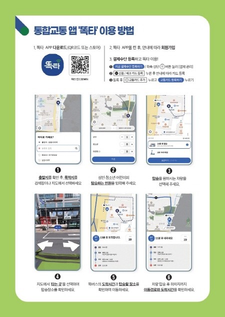 ▲ 통합교통 앱 ‘똑따’ 이용방법 포스터(사진=경기교통공사) |
