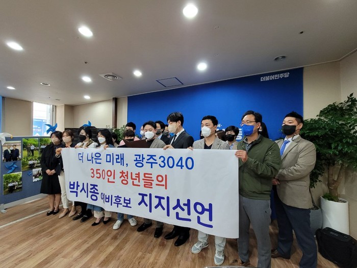 [광주=프레스뉴스] 강래성 기자= 광주의 청년들을 중심으로 이루어진 ‘더 나은 미래’(대표 이용수) 회원 350명은 13일 11시 박 예비후보의 선거사무소(광산구 하남대로 135)에서 지지선언을 진행했다.