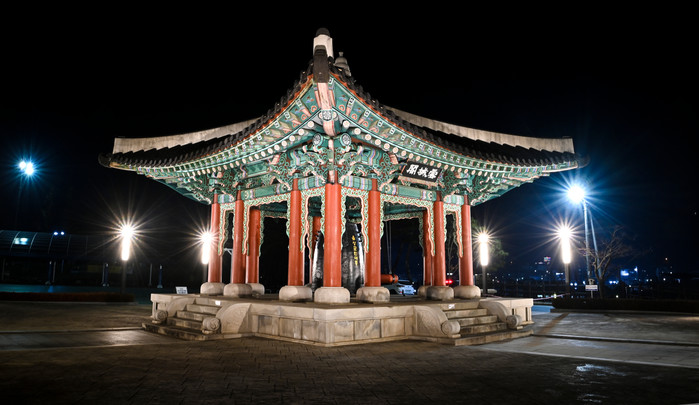 조명은 은은하고 따뜻한 주광색 계열로 교체해 설성각 처마의 전체적인 선형과 음성군민대종의 곡선미를 돋보이게 했다.