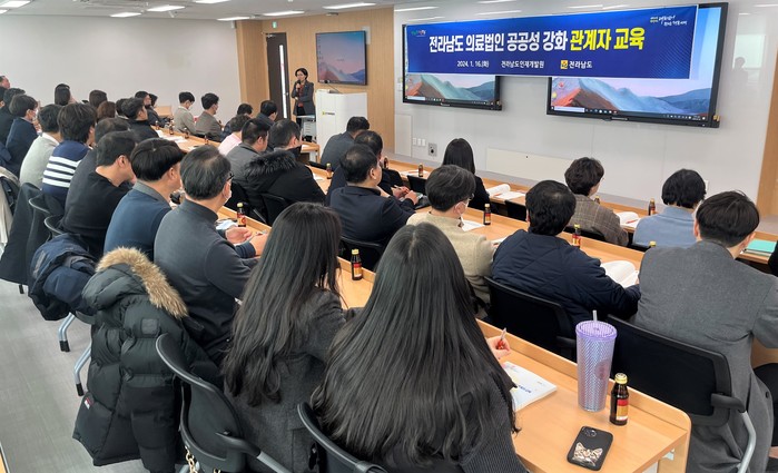 [전남=프레스뉴스] 강래성 기자= 전라남도는 16일 전남도인재개발원에서 의료법인 관계자가 모처럼 한자리에 모여 법인 운영 및 민원 실무 능력 제고를 위한 정보를 공유하며 의료법인의 공공성 강화를 다짐했다고 밝혔다.