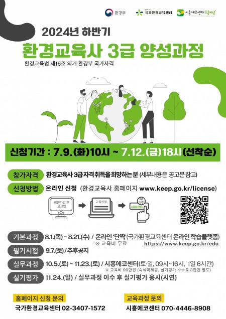 2024년 하반기 환경교육사 3급 양성 과정 문의는 시흥에코센터로 하면 된다.
