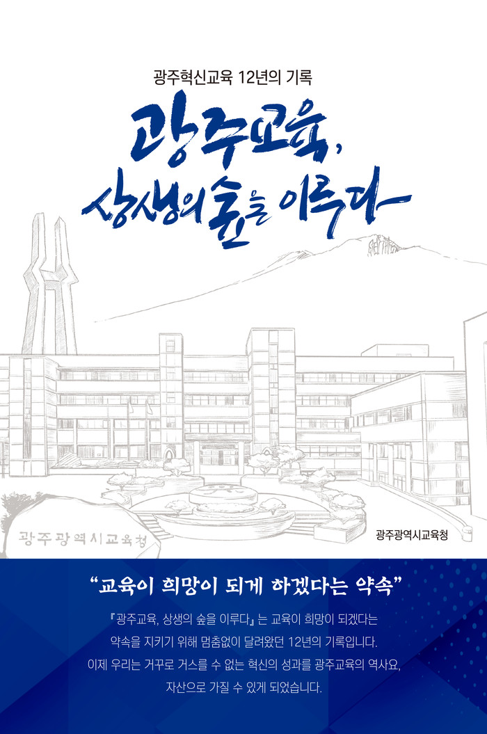 ‘광주교육, 상생의 숲을 이루다’에는 경쟁교육이 상생교육으로 제도화 되는 과정·배움의 본질에 집중한 수업과 교육과정의 변화· 보편적 교육복지 정책의 확장·시민과 함께 하는 교육협치·시도교육 공공성 확대를 위한 광주교육의 선도 정책 등이 담겨 있다.
