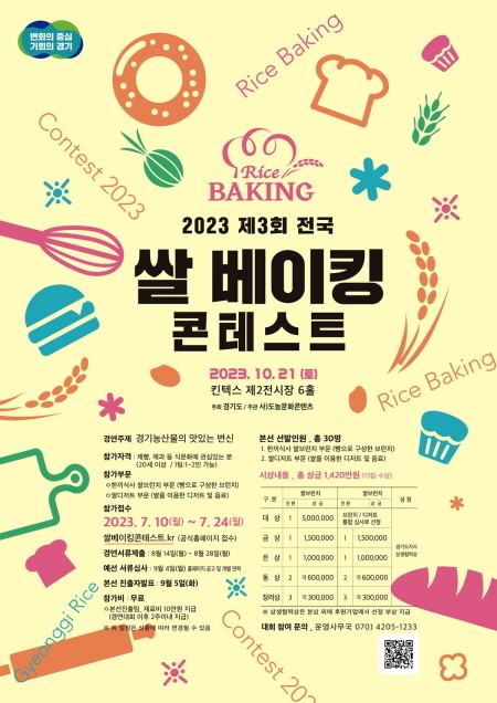 [프레스뉴스] 장현준 기자= 경기도는 오는 10월 21일 일산 킨텍스에서 열리는 ‘2023 전국 쌀 베이킹 콘테스트’ 참가자를 7월 10일부터 24일까지 모집한다.