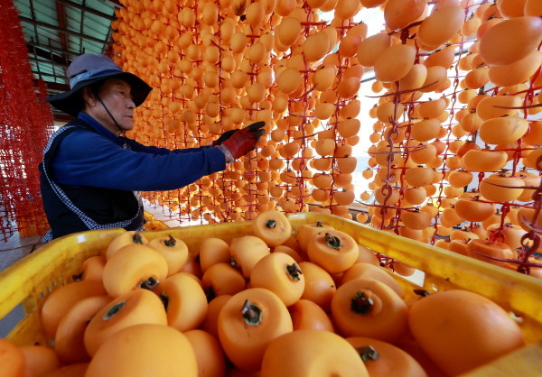 [프레스뉴스] 박영철 기자= 함양군 서하면 봉전리 오현마을 곶감건조대에서 한 농민이 곶감을 손질하고 있다.