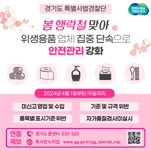 | ▲봄 행락철 맞아 위생용품 업체 집중 단속으로 안전관리 강화 그래픽(사진=경기도) |