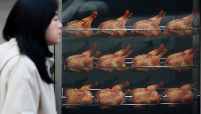 | ▲ 치킨을 판매할 때 조리 전 닭고기 무게를 소비자에게 고지해야 하는 '치킨 중량표시제'가 본격적으로 시행되는 15일 서울 시내의 한 치킨매장 앞으로 시민이 지나가고 있다./사진=뉴스1 |