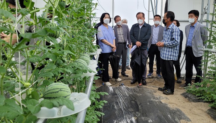 11일 군에 따르면 이날 오후 농촌진흥청 국립원예특작과학원 주관 ‘중소형 수박생력화 수직재배 시범사업’을 수행하는 지역 농가를 대상으로 현장 컨설팅을 추진했다.