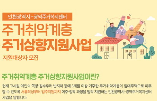 [프레스뉴스] 문찬식 기자= 인천시가 ‘주거상향 지원 사업’을 통해 주거 취약계층의 집 걱정을 덜어준다.