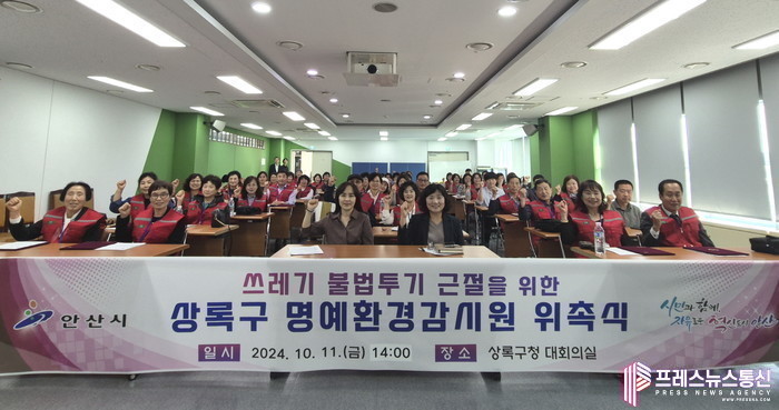 [프레스뉴스] 장현준 기자= 안산시 상록구(구청장 이정숙)는 지난 11일 상록구청 대회의실에서 쓰레기 불법투기 명예환경감시원 57명을 추가 위촉하고 쓰레기 불법투기에 대한 대응에 나섰다고 15일 밝혔다.