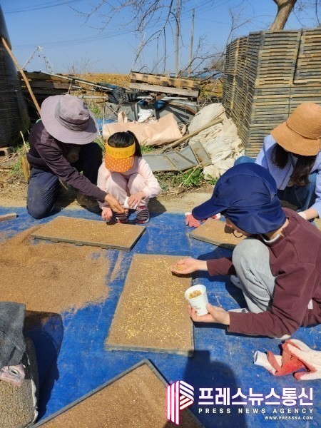 | ▲친환경 경기미 볍씨 파종을 체험하고 있다.(사진=경기도) |