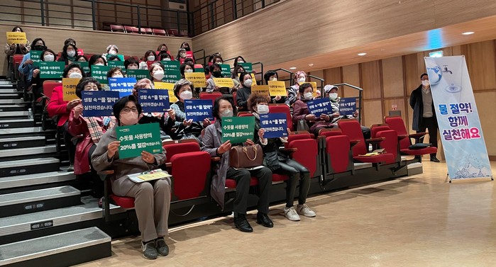 첫 날인 지난 24일 영광 예술의 전당에서 한국부인회 전남도지부.시군 지회 임원단과 회원 80명이 모여 ‘가정 내 계량기 수압 낮추기, 빨래 모아서 하기’ 등 생활 속 물 절약 10대 수칙 실천 선언을 했다.