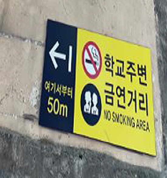 ▲인천시 중구 광성고등학교 우측 통학 길에 설치된 금연표지판 (사진=인천시) |
