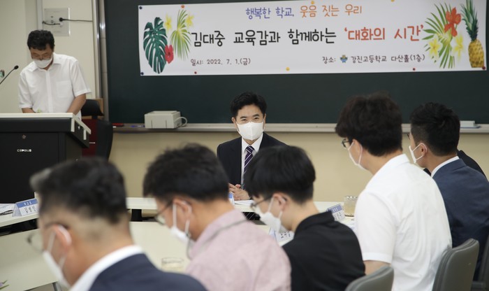 | ▲김대중 전남교육감 강진고 방문 교육가족과의 대화/전라남도교육청 제공 |