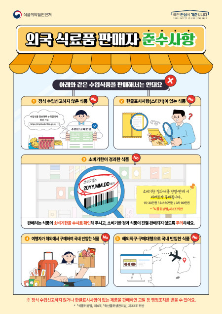 최근 외국인 집중 거주지를 중심으로 보따리상 등을 통해 정식 수입 신고를 거치지 않은 식품이나 한글 표시가 없는 식품이 유통·판매되는 경우가 있어 주의가 필요한 상황이다.