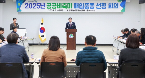 | ▲ 2025년 공공비축미 매입품종 선정 회의(사진=함양군) |