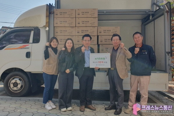 [프레스뉴스] 장현준 기자= 시흥시 군자동에 위치한 ㈜기프트원(대표 원용길)이 취약계층의 질병 예방을 위한 KF94 마스크 5만장(2500만원 상당)을 25일 군자동 행정복지센터(동장 고종남)에 기부했다.