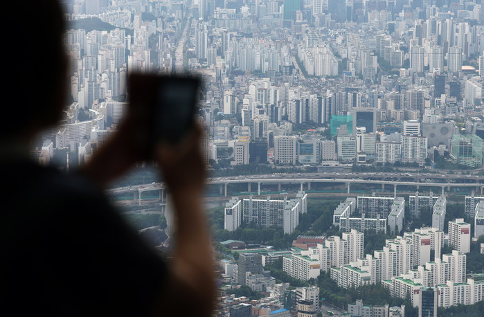 | ▲ 사진은 이날 오후 서울 송파구 롯데월드타워 전망대 서울스카이에서 바라본 시내 아파트 단지 모습./사진=뉴스1 |
