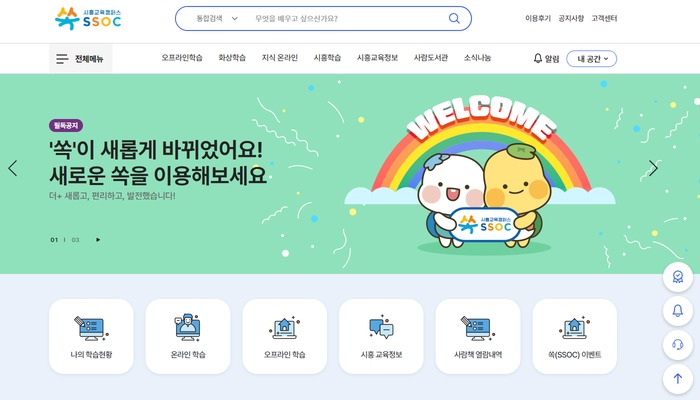 ‘시흥교육캠퍼스 쏙(SSOC)’은 경기도 평생학습포털 지식(GSEEK)과 연계해 개발된 온라인 평생학습 포털로, 지난 2022년 8월부터 누구나 컴퓨터와 모바일을 통해 언제 어디서나 학습할 수 있도록 운영되고 있다. 시는 고도화를 통해 오는 9월부터 ▲시흥평생학습 포털과 ▲시흥행복교육 포털을 통합해 새로운 기능을 개선해 선보일 예정이다.