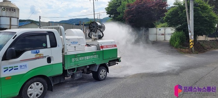 ▲경기도 북부동물위생시험소 소독모습(사진=경기도북부청) |