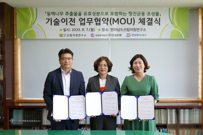 | ▲산림자원 특허기술 이전 협약-진설초해/전라남도 제공 |