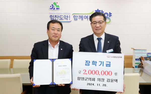 | ▲ 함양군의회 김윤택 의장 장학금 200만 원 기탁(사진=함양군) |