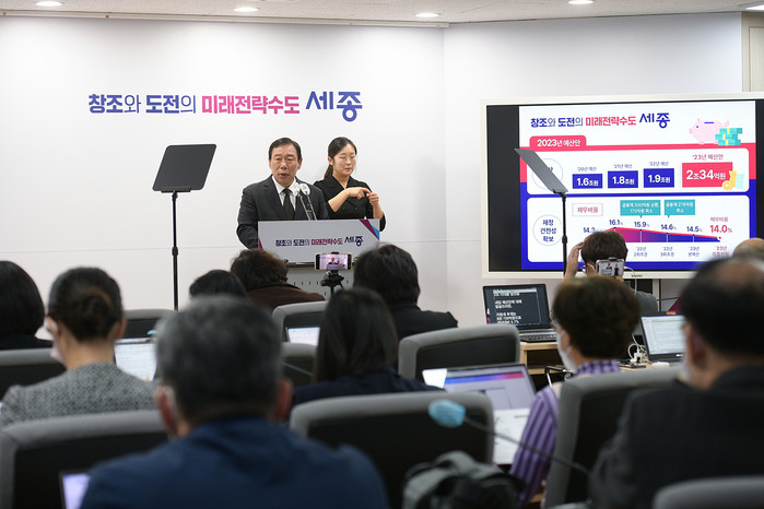 ▲11월 1일 브리핑하고 있는 최민호 세종시장 |