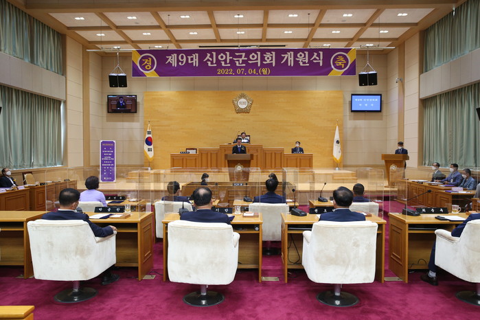 [전남=프레스뉴스] 강래성 기자= 신안군의회(의장 김혁성)는 지난 7월 1일 원구성을 원만히 마무리 하고 7월 4일 월요일 제9대 신안군의회 개원식을 개최했다.